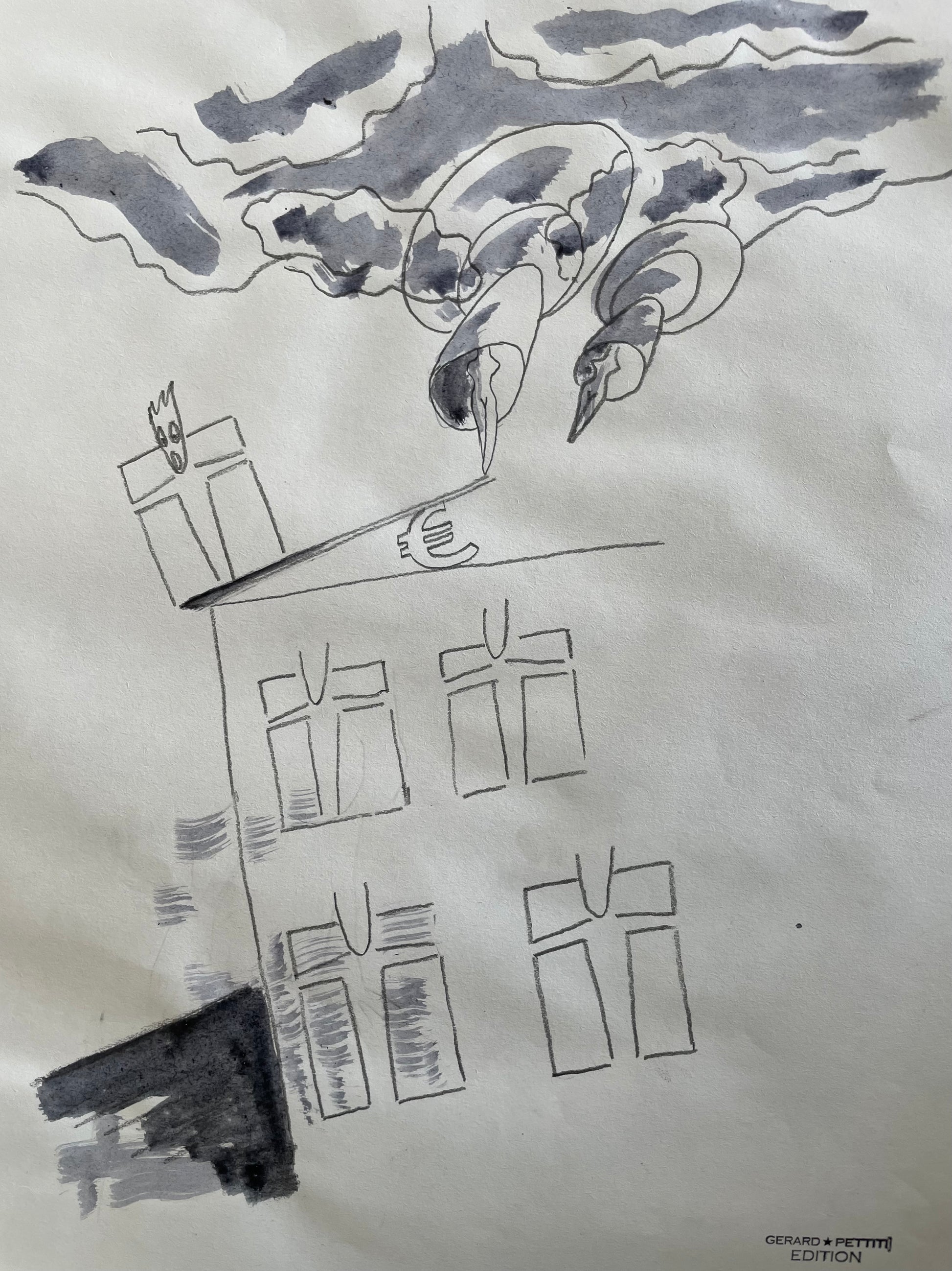 Graphite, encre sur papier / 42 x 29.5 cm/ pièce unique / tampon d’atelier