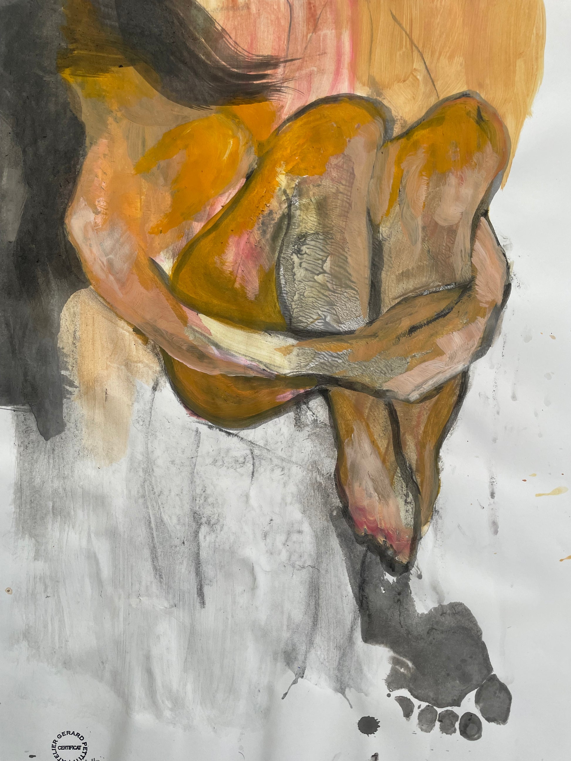 Pigments, graphite, encre et cendres sur papier / 65 x 50 cm / pièce unique, signée tampon d’atelier, circa 2022