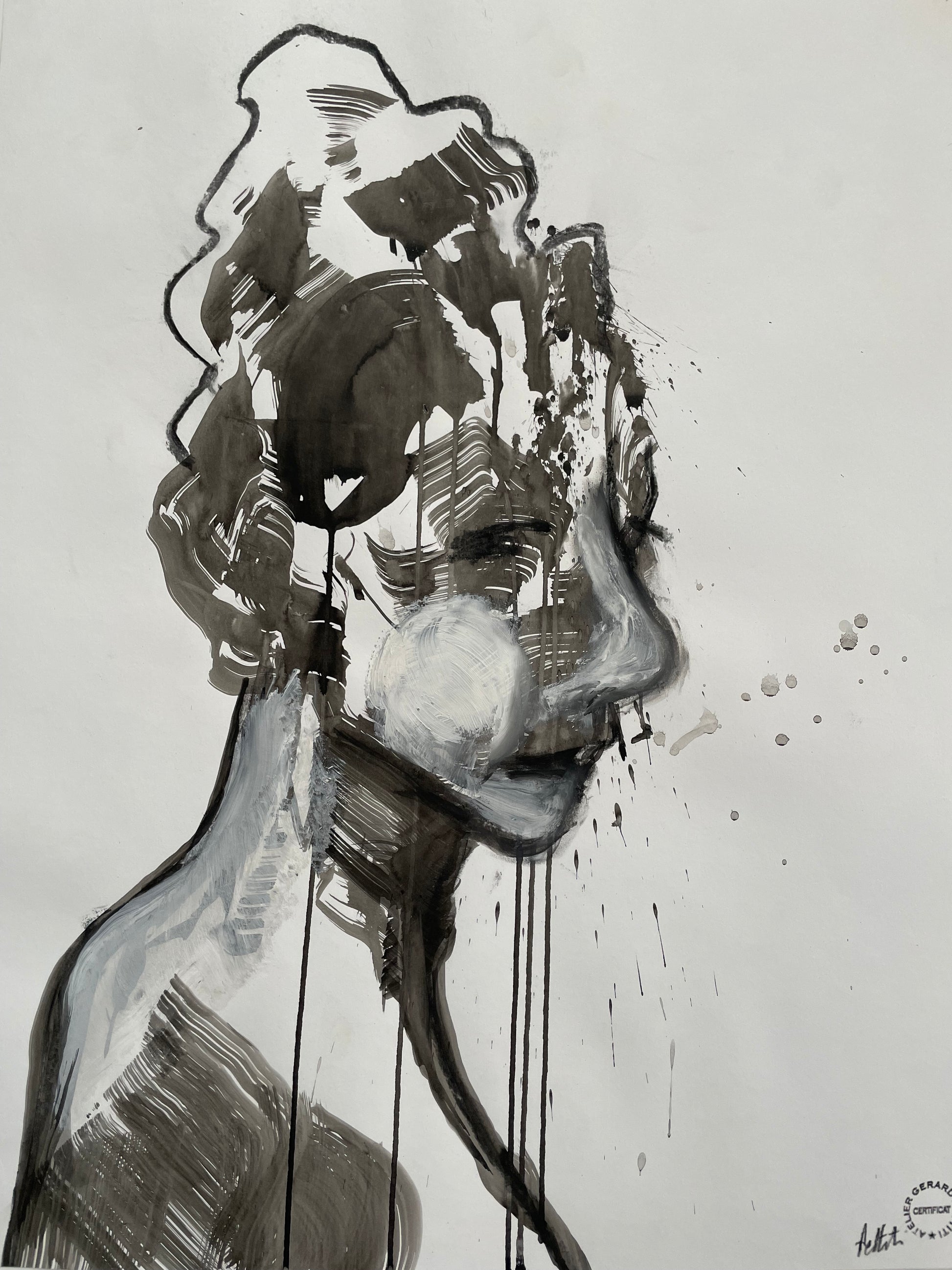 Pigment, encre et cendres sur papier / 65 x 50 cm / pièce unique, signée tampon atelier, historique d’exposition, sera reproduite dans catalogue en préparation, circa 2021