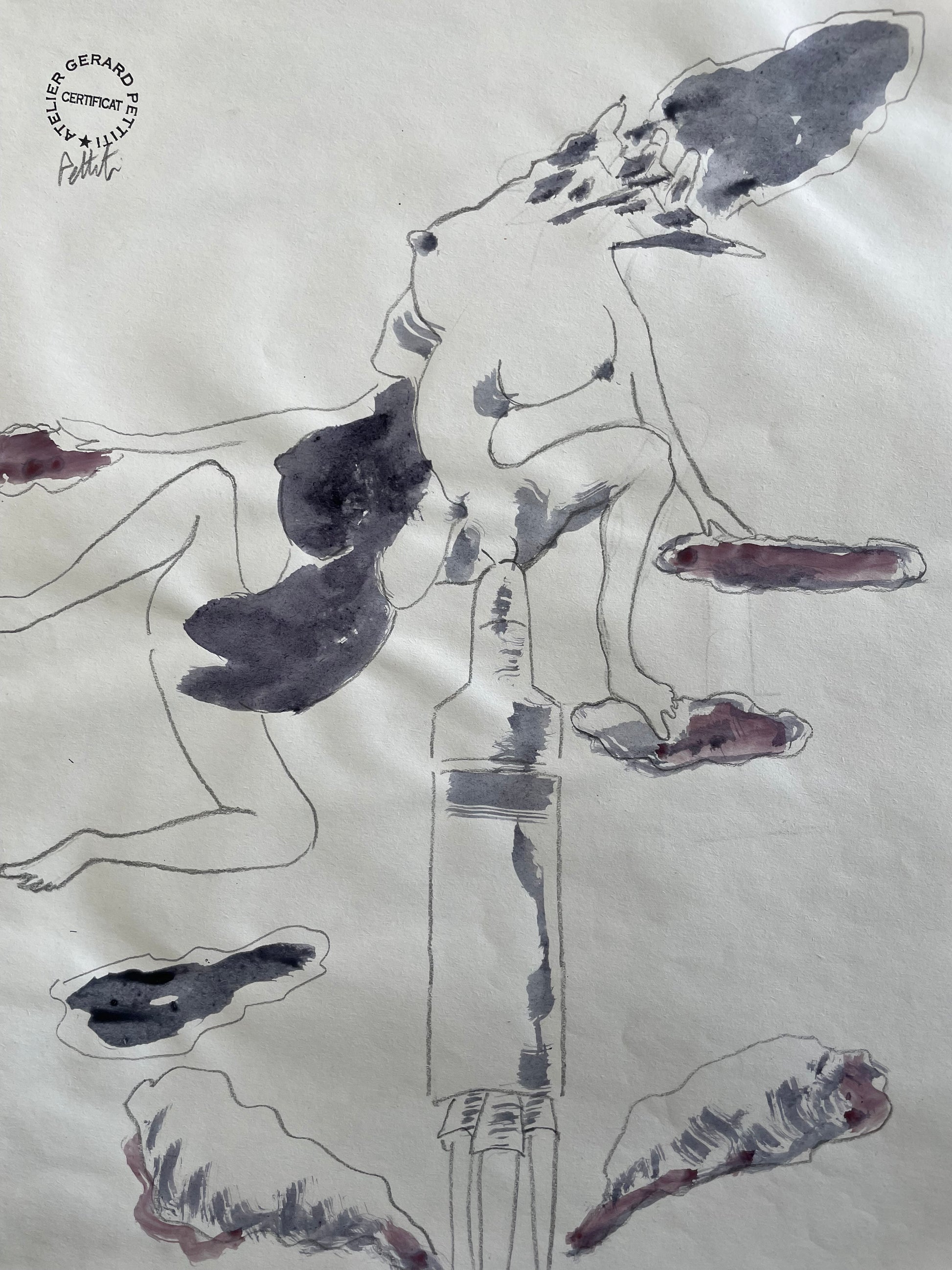 Graphite, cendres et lavis d’encre sur papier / 42 x 29.5 cm / pièce unique